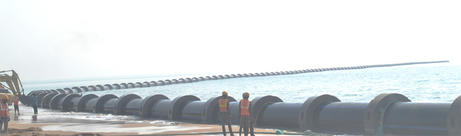 Installation of 1000 MM OD x 7,100 mtrs HDPE Treated Waste Water Pipeline into the Arabian Sea at Tarapore, Maharashtra for MIDC. |
